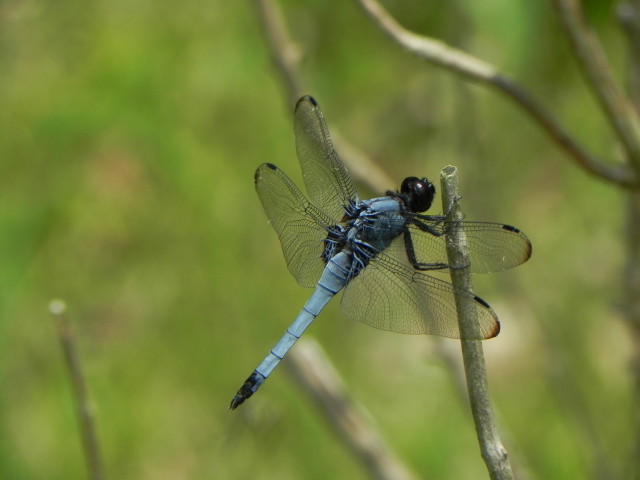 その代わり、調整池は今週もアブラゼミなどのセミやトンボ(チョウトンボを含む)の王国になっていて、それぞれ何十匹という数で見ました。セミは今日もアブラゼミが大半のようでしたが、メスを探して切羽詰まっているのか、少しでも暑さをしのごうとしているのか、鳴くよりも飛んでいる方が多いみたいで、先週より少し静かに思えました。また、トンボは写真に撮ったシオカラトンボなどよりもチョウトンボの方がずっと多くて、水面上のあちこちで踊るように飛んでいるのが印象的でした。多分、卵を産んでいたのだろうと思います。