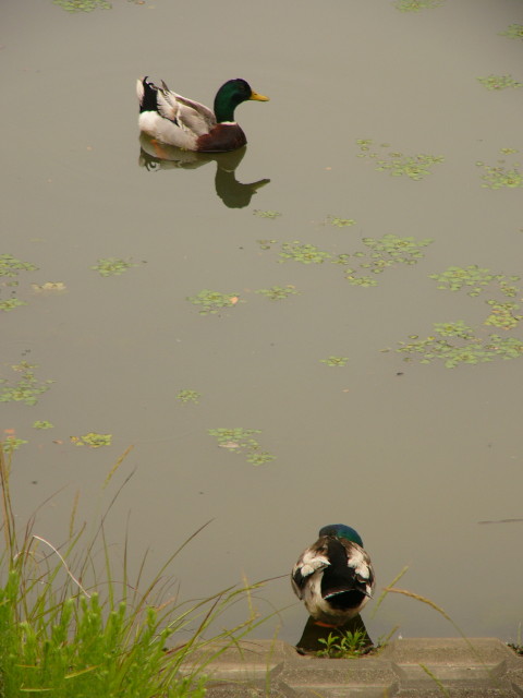 でも、アイガモ兄弟の三郎が増えてきた水草を潜って食べたり、太郎を誘って泳ぐパフォーマンスを見せてくれたので、先週よりは寂しさを感じませんでした。