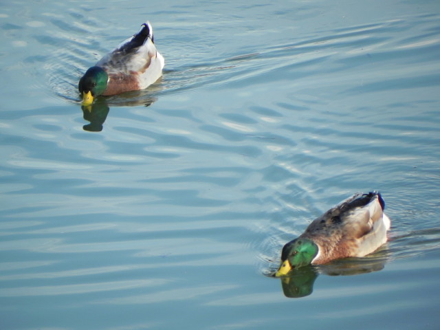 ・調整池の水面の北東隅を拠点に、少し泳ぎ回っていたが、南岸にまでは行かなかった