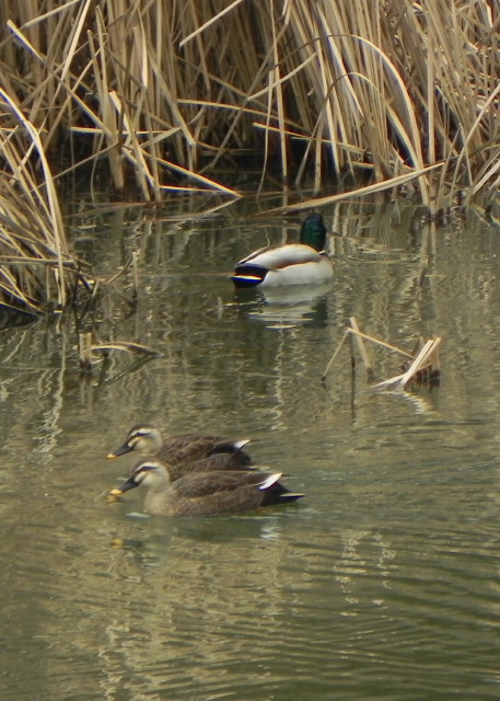 そのため、調整池の鳥たちも、マガモのペアとカルガモのペアを見付けられたくらいで、あとは鳴き声だけが聞こえるスズメとコガモ、アオジくらいかと思っていましたが、調整池を回っているうちに目と耳が慣れてきて、結構たくさんの種類がいることに気付きました。