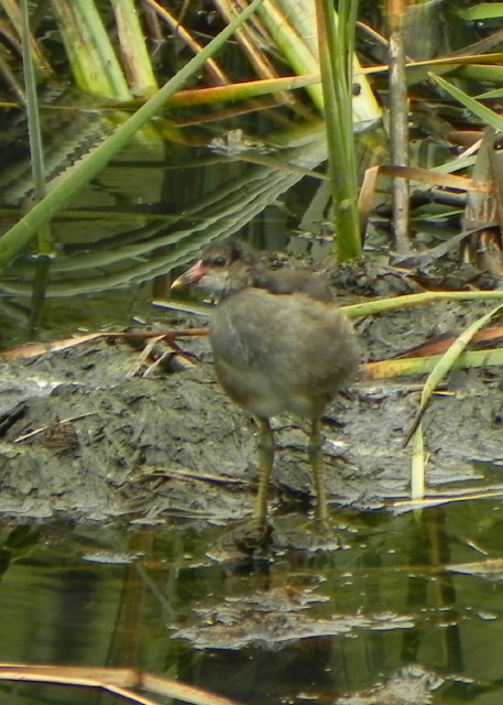 あと、バンの家族も少しだけ姿を見せてくれました。今日もつがい2羽と幼鳥2羽の計4羽のグループで、今のところ、親から離れていても全然平気といった感じのマイペースの幼鳥はいないようです。こちらも来週もぜひまた会って、写真を撮りたいです。