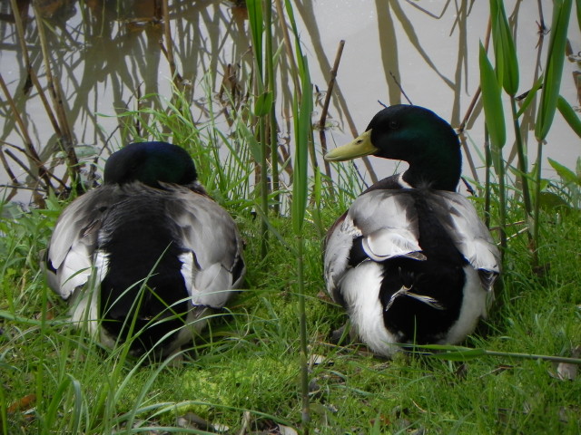 ちなみに、写真のアイガモ兄弟はここ1ヶ月ほどヨシやガマの茂みの南側にある小さな開水面周辺でよく見かけます。冬の間は見かけない場所で、春から初夏に多く見かける気がします。これも理由は分かりませんが、何か理由があるのだろうと思います。