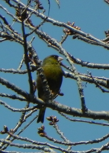 それから、水戸市でもだいぶサクラが咲いているようですが、調整池の周囲に植えられているサクラはまだどれもつぼみで、咲くまでにはまだ少し時間が必要なようでした。写真のカワラヒワが留まっているサクラもそうで、開花や満開になったらいろいろ工夫して撮ってみようと思っています。