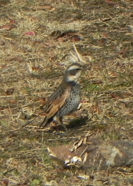 最後に、調整池の東側に隣接する公園でアオジの群れを確認したほか、先週はこの公園で見かけたツグミを調整池で見ました。同じ個体かどうかは分かりませんが、来週もぜひまたモデルになってほしいです。