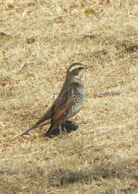 それから、この日はアカハラを17日(土)に会った場所とほぼ同じ場所で見かけて、このアカハラは南側の木立を中心にしたあまり広くないエリアを縄張りにしているのかもしれないと思いました。今までも大体このエリアで見かけていますし、アカハラは灌木やヨシやガマなどの茂み、日当たりの良い開けたところ、見通しの良い木の上よりも、大きな木が入り組んで見通しの悪い森のような場所の下の方が好きなようです。
