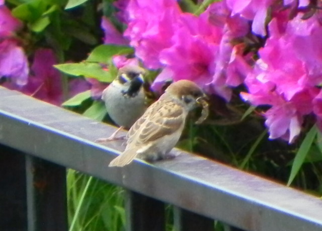 これからしばらくの間は巣立ったスズメの幼鳥が集まってくると思うので、観察や撮影をとても楽しめそうです。