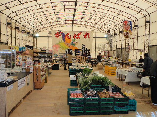 でも、今日は仮設の大型テントではありましたが、営業していて、昼食や土産物を少し買うことができました。写真左その大型テント内で撮ったものです。